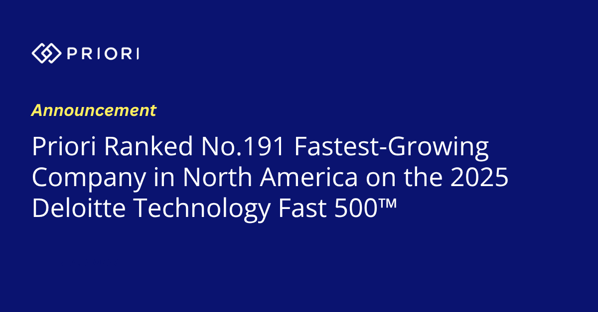 New York, NY— November 19, 2025 — Priori, the leading legal technology platform for outside counsel decision-making, today announced it ranked No. 191 on the 2025 Deloitte Technology Fast 500™, a ranking of the 500 fastest-growing technology, media, telecommunications, life sciences, fintech, and energy tech companies in North America, now in its 31st year.