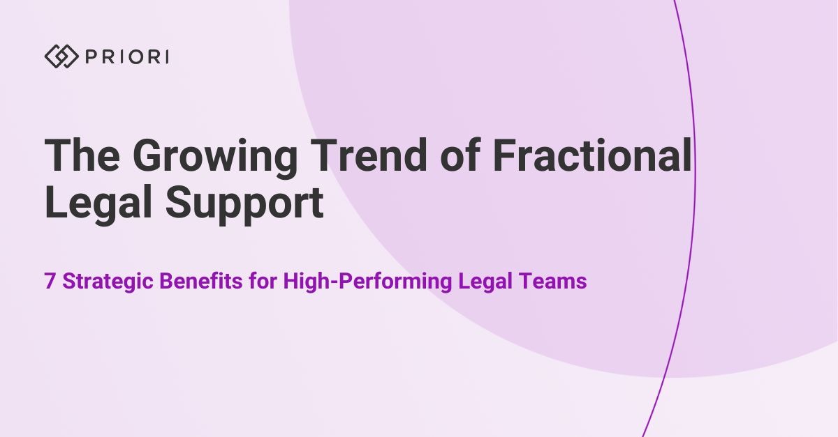 Recently, Matt Wheatley, VP of Client Strategy here at Priori, sat down with Kristina Agassi, Executive Director, Atrix Advisory, and Lynden Renwick, Managing Partner, Out-House Attorneys, to discuss the emerging trend of fractional legal support, and why growing businesses are adopting this model to manage legal complexity, fill critical gaps, and drive better outcomes.